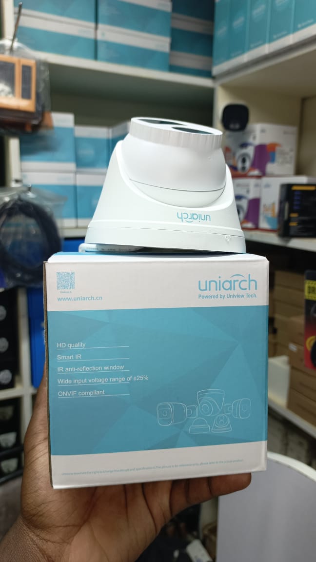 The UniArch 2MP IR Dome Camera excels in low-light conditions, thanks to its advanced infrared (IR) technology, providing a night vision range of up to 30 meters. This feature ensures consistent performance even in complete darkness, delivering clear black-and-white images when ambient light is insufficient. Whether it’s late-night monitoring of a storefront or round-the-clock surveillance of a residential property, this camera enhances security by maintaining visibility in challenging lighting scenarios, offering reliable protection at all hours.